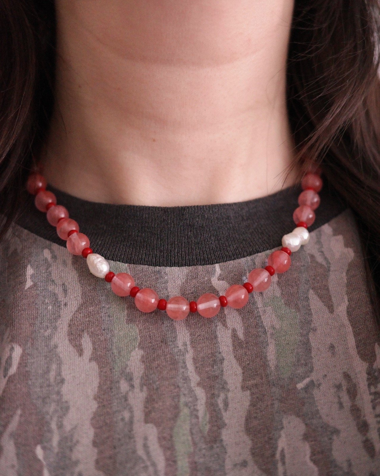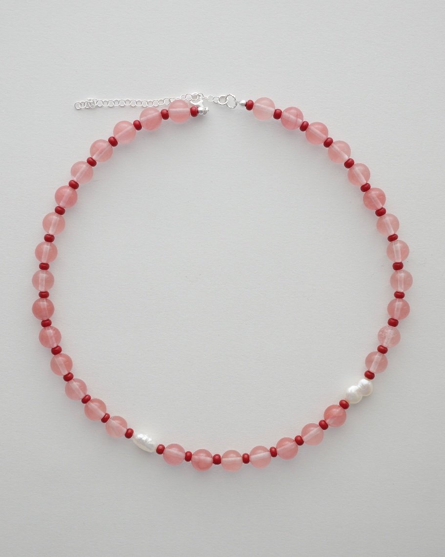 a beautiful mix of cherry quartz, pearl, glass beads & sterling silver