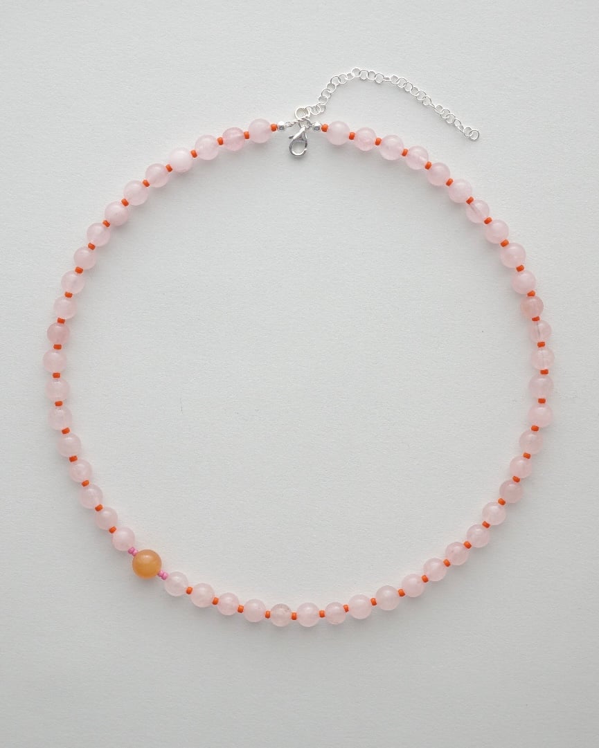 a beautiful mix of orange jade, rose quartz, glass beads & sterling silver