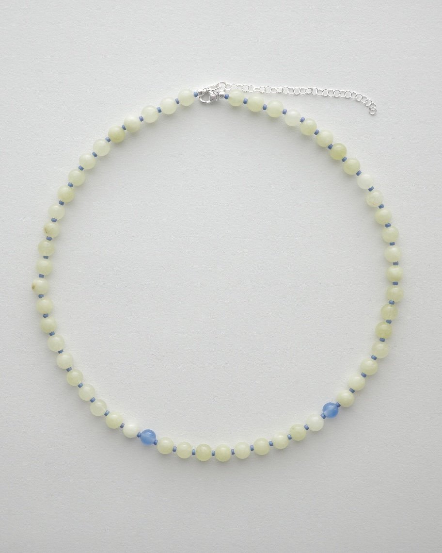 a beautiful mix of lime jade, blue chalcedony, glass beads & sterling silver