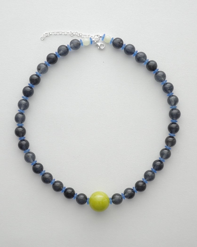 a beautiful mix of jade, quartz, glass beads & sterling silver