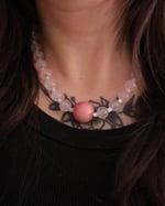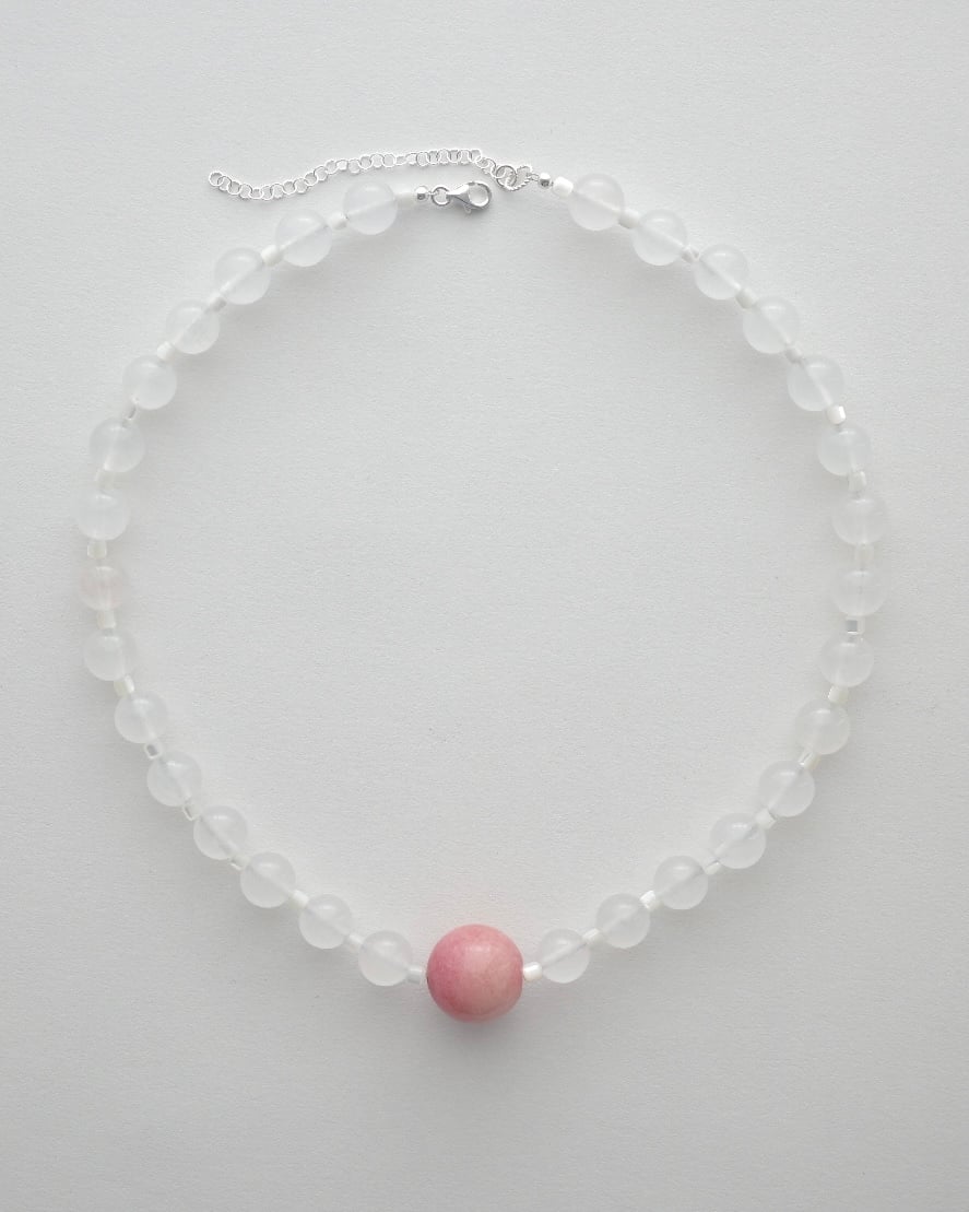 a beautiful mix of jade, white quartz, mother of pearl, glass beads & sterling silver